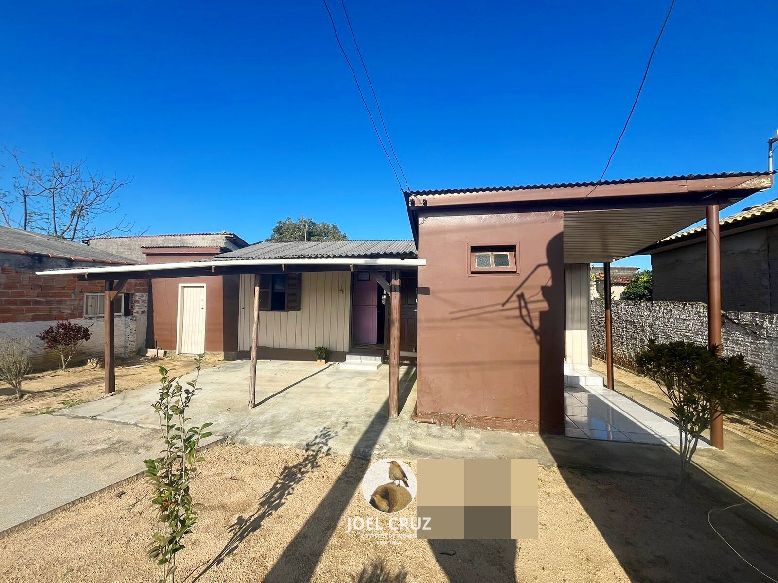 Casa: 2 quartos, sala e cozinha conjugas, banheiro, garagem, área de serviço, murada e escriturada.