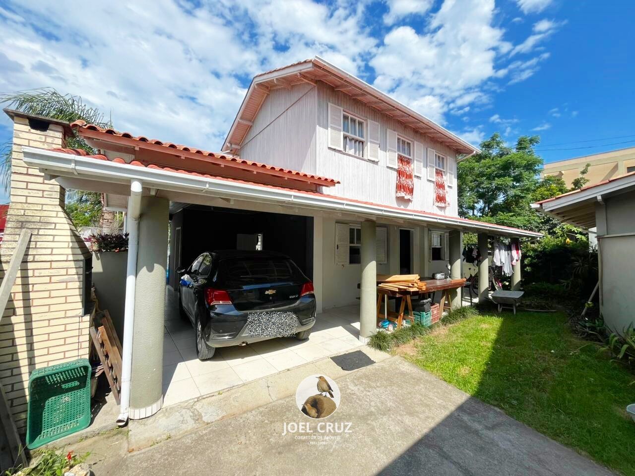 - Casa mista: 4 quartos (sendo 1 suíte), sala, cozinha, banheiro social, área de serviço, garagem, churrasqueira, vararda, sendo área construída de 100,00 m²
